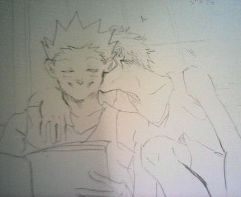 画像。どうしてもゴンにかまってほしくて、ちょっかい出すキルアを描いてしまいます。